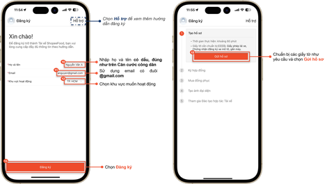Để thực hiện gửi hồ sơ đăng ký cho ShopeeFood, vui lòng thực hiện theo hướng dẫn sau đây: