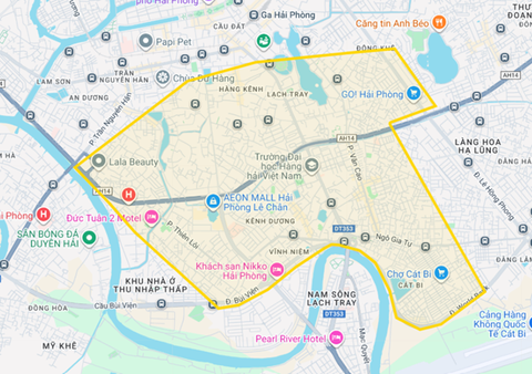 - Phía Bắc: chạy theo trục Hải Triều → Hàng Kênh → Lạch Tray → Văn Cao, kéo đến khu vực gần GO! Hải Phòng